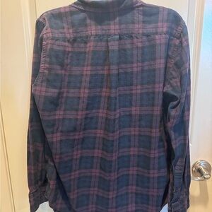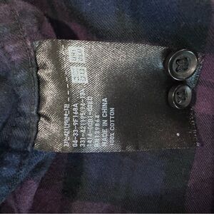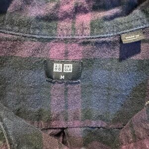 Uniqlo casual button down shirt. Navy and plum plaid design. Perfect for everyday wear.