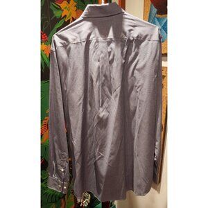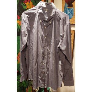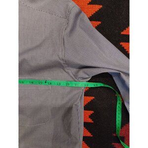 This Men's Navy and White Check Cotton Buttondown Shirt in size Large showcases a unique pattern, offering style and comfort. Its soft cotton fabric ensures all-day wearability.