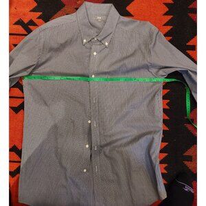 Uniqlo Men's Navy and White Check Cotton Buttondown Shirt. Size Large