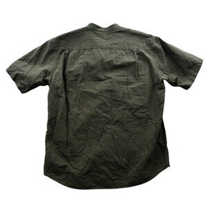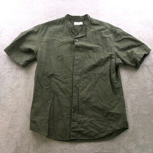 Uniqlo Men's Shirt Small Short Sleeve Cotton Linen Blend Green Button Up Casual