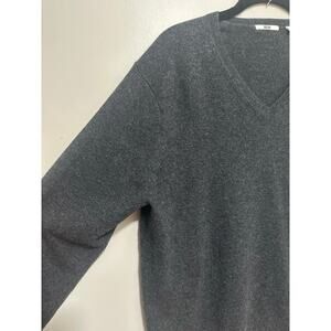 Uniqlo Mens Sweater Large Black 100% Cashmere Long Sleeve V Neck Lightweight