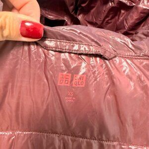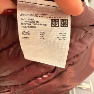 Bold red puffer jacket by Uniqlo. Lightweight and warm. Ideal for chilly days.