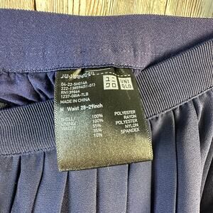 Uniqlo Midi Skirt Womens M Navy Blue Chiffon Lined Electric Pleated A-Line