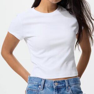 Uniqlo Mini T-Shirt White Basic Top Cropped 90's Tee size L