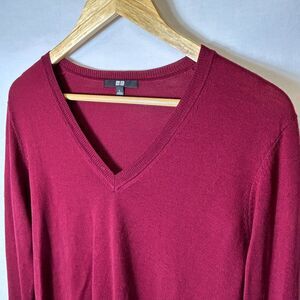 Uniqlo NWOT Wine Red Extra Fine Merino Wool V-Neck Long Sleeve Sweater Size L