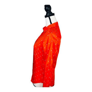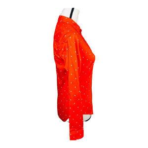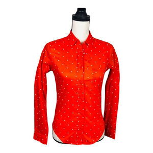 Uniqlo Orange Lawn Polka Dot Long Sleeve Button Up Blouse Top Cotton XS New