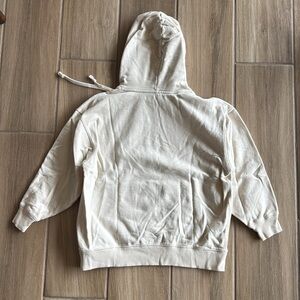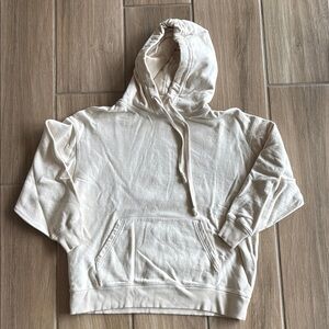 Cozy cream hoodie with a front pocket. Perfect for casual wear.