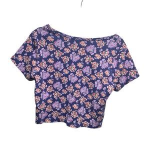 Uniqlo Paul & Joe UT Womens Floral Cropped Cotton Top L Boho Cottagecore Beach