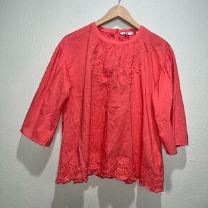 In good condition. Uniqlo Pink Embroidered Floral 3/4 Sleeve Top Women Size Small