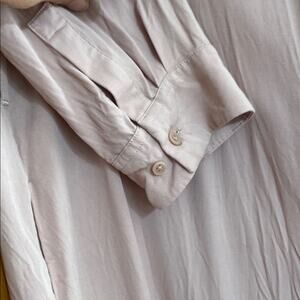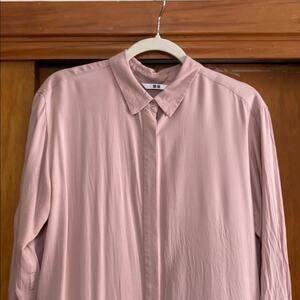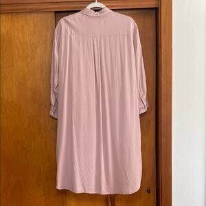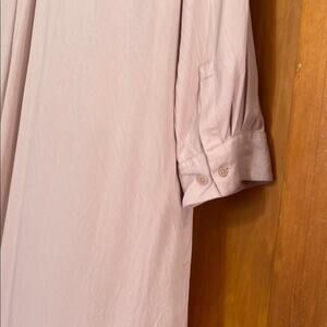 Uniqlo Pink Rayon Long Sleeve Hidden Button Down Shirt Dress 3/4 Sleeve Pockets