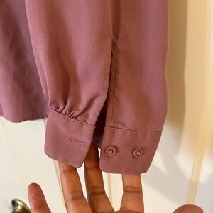 Uniqlo Purple Mauve Long Sleeve Button Front Collarless Rayon Blend Blouse. Size Women's Large