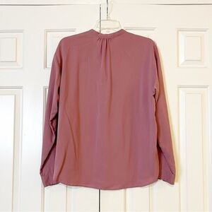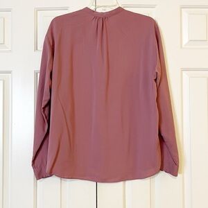 Uniqlo Purple Mauve Long Sleeve Button Front Collarless Rayon Blend Blouse. L