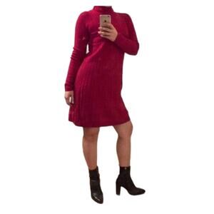 Uniqlo Red Cashmere Blend Turtleneck Cable Knit Sweater Dress Size S