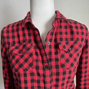 Uniqlo Red Plaid Authentic Flannel Shirt Women's M Collared Button Down Front