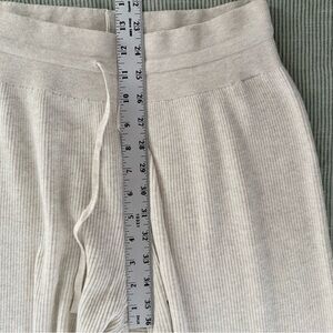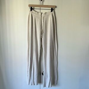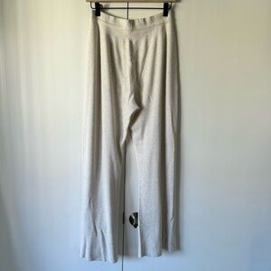 Wide flare leg knit sweatpants with drawstring. Waist is super stretchy! Rayon/polyester/nylon blend. Good condition.