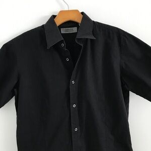 Uniqlo STRETCH Slim Fit Shirt Black Button Short Sleeve Mens Small