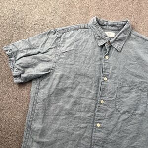 Uniqlo Shirt Adult Medium Blue Button Up Short Sleeve Linen Casual Men's