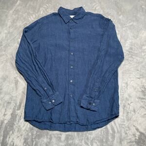 Keywords: Uniqlo Shirt Mens Large Blue Slub Linen Classic Casual Breathable Lightweight
