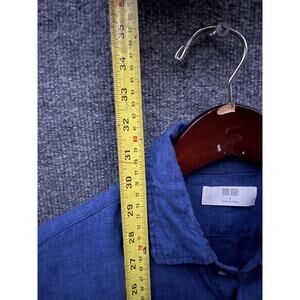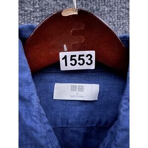 Uniqlo Shirt Mens Small Blue 100% Linen Button Up Long Sleeve Casual Pocket