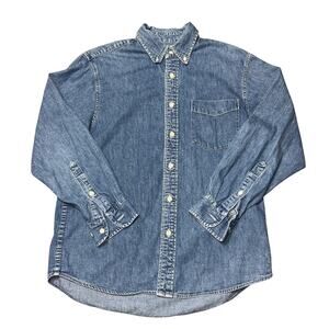 Uniqlo Shirt Mens Small Blue Denim Button Down Long Sleeve Casual Pocket Western