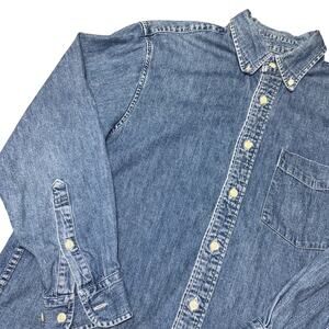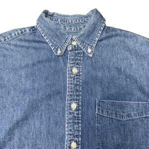 – Uniqlo men’s denim button-down shirt – Size Small – Made in unknown