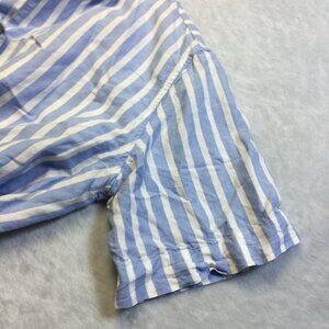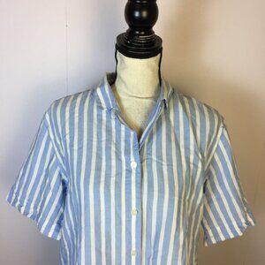 Uniqlo Shirt Size M Womans Blue White Striped Linen Blend Short Sleeve Cropped