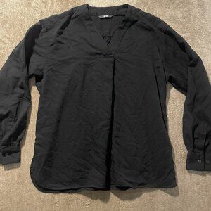 Uniqlo Shirt Womens Medium Black Tunic Vneck Long Sleeve Relaxed Modest Basic