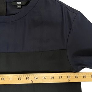 Uniqlo Silky Colorblock Short Sleeve Midi Shirt Dress Navy Black S