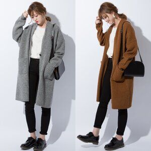 Uniqlo Single Button Wool Ribbed Knit Long Sleeve Sweater Coat