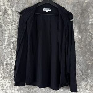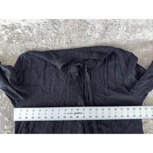 Uniqlo Size L Tie Front Casual Minimalist Button Top Black Long Sleeve