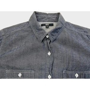 Uniqlo Size Small Women's Charcoal Blue Denim Style Long Sleeve Cotton Shirt