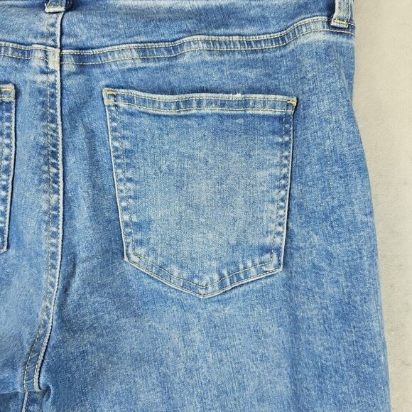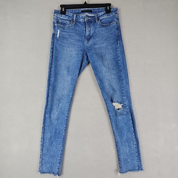 Uniqlo Skinny Jeans Womens 27 Blue Distressed Mid Rise Stretch Comfort Acid Wash