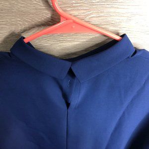Uniqlo Womens Small Drape Mock Neck Half Sleeve Blouse Navy Blue NEW