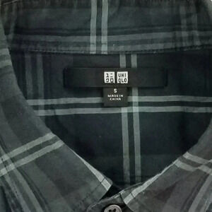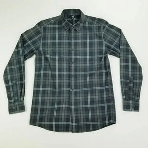 Uniqlo Small Men's Button Down Charcoal Black Check Long Sleeve Cotton Shirt