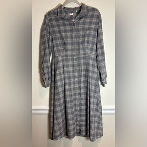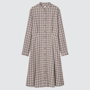 Uniqlo Soft Flannel Long-Sleeve Flare Dress Grey / Tan Plaid Size XS
