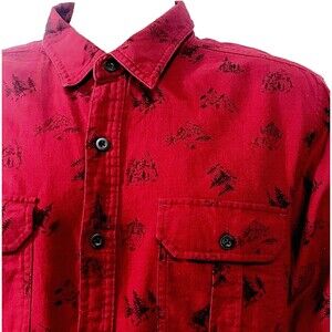 Uniqlo Soft Flannel Shirt Red Mountain Pine Tree Graphic L Men Outdoor Gorpcore