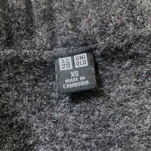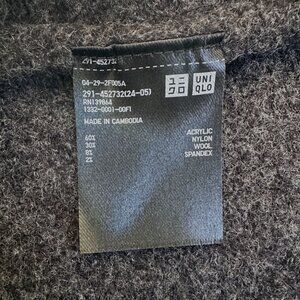 Cozy and chic, this Uniqlo Souffle Yarn Turtleneck Dress is a perfect cold-weather staple. Crafted from Uniqlo's signature light, fluffy, and soft "Souffle Yarn" blend (acrylic, nylon, wool, spandex), the material is known for being warm and comfortable against the skin. The dress features a comfortable turtleneck (or mock funnel neck) and a relaxed, straight-cut silhouette that still offers a sleek look. The long sleeves have ribbed cuffs, and the puff sleeves at the shoulder give it a soft, updated feminine impression. The charcoal dark gray color provides a versatile, neutral base that can be dressed up or down. This midi-length pullover style is an excellent choice for a comfortable yet polished outfit, easily paired with tights, leggings, or boots.