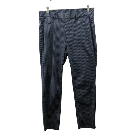 Uniqlo Stretch Legging Pants Womens L Navy Blue Pinstriped Pull On Skinny Knit