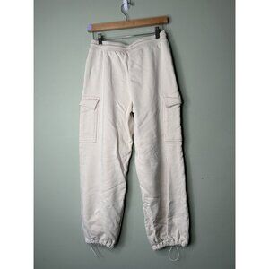 Uniqlo Sweat Cargo Pants White Drawstring 100% Cotton Women's Size Medium M