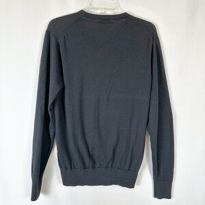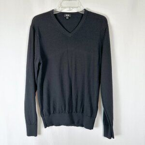 Uniqlo Sweater Men Small Black Merino Wool V-Neck Long Sleeve Academia Business