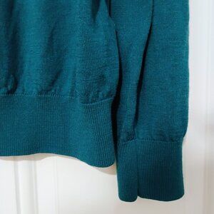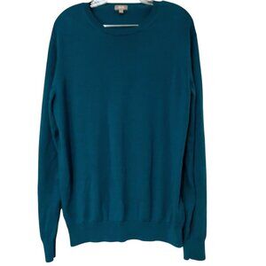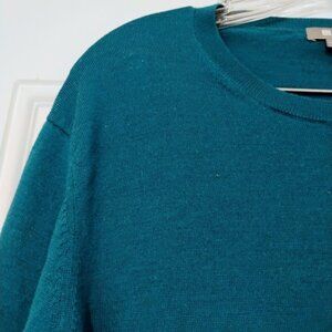 Uniqlo Sweater Mens Crew Neck 100% Pure New Wool Teal Blue Green Aqua Turquoise