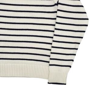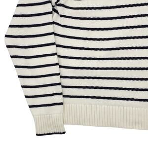Uniqlo Sweater Womens Small White Black Striped Crewneck Pullover Cotton Blend