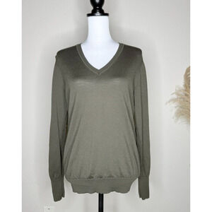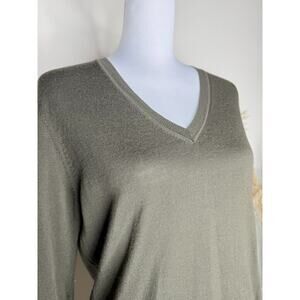 Uniqlo Sz Large 100% Pure New Wool V Neck Green Sweater Longsleeve Lightweight