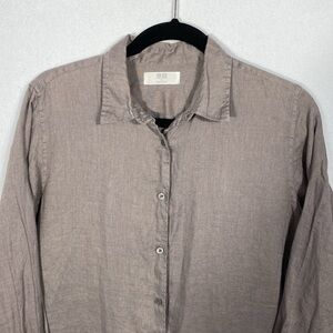 Uniqlo Taupe Casual Linen Button Down Shirt size medium