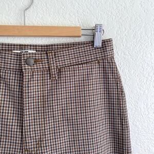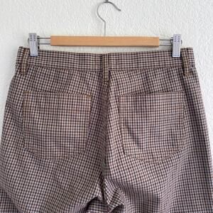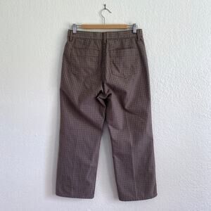 Uniqlo U Checked Straight Pant High-Waist Cropped Trousers Brown Blue Womens 6