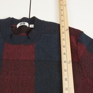 Uniqlo U Crew Neck Check 100% Wool Pullover Red Blue Sweater Mens Sz S