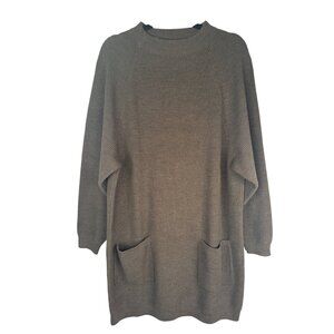 Uniqlo U Womens Large Olive Mock Neck Long Sleeve Knit Dress With Pockets NWT