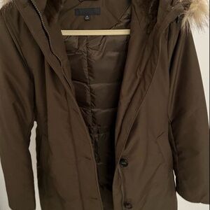 Uniqlo Ultra Warm Down Parka Heat Tech Olive Jacket Fur Hood Coat XS