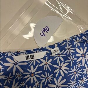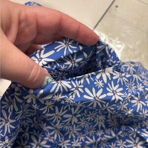 Uniqlo V Neck Long Sleeve Mini Dress Blue Daisy Floral Size XS Pockets Printed