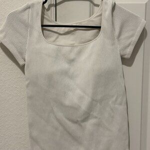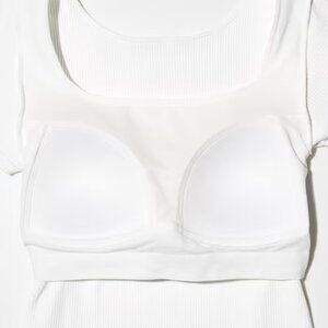 Uniqlo White Ribbed Square Neck Cropped Bra Top (Medium)